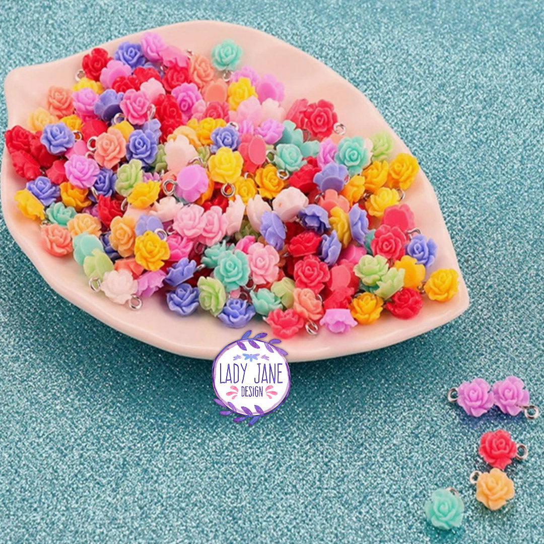 5pcs Pack of small flower pendant rose charms
